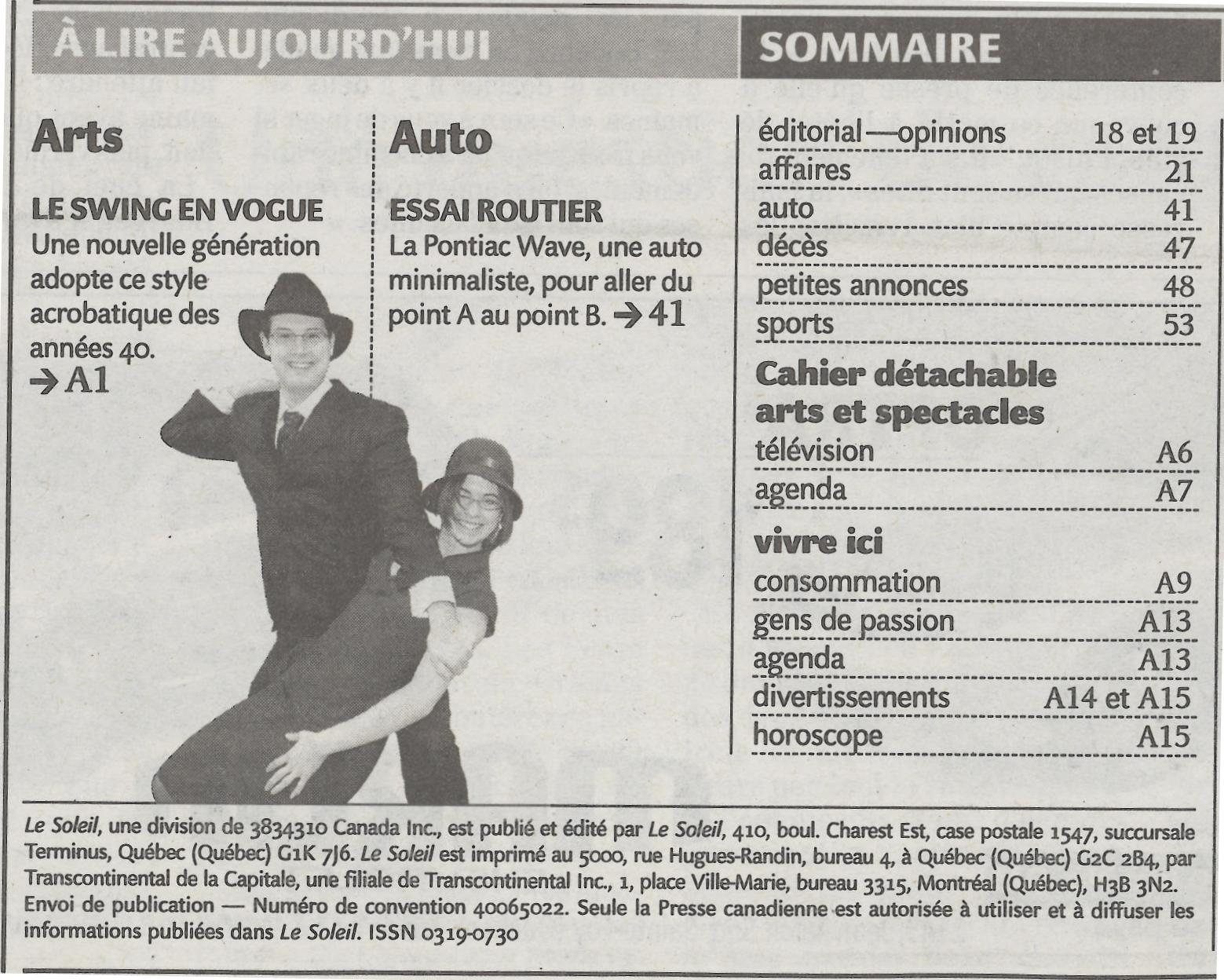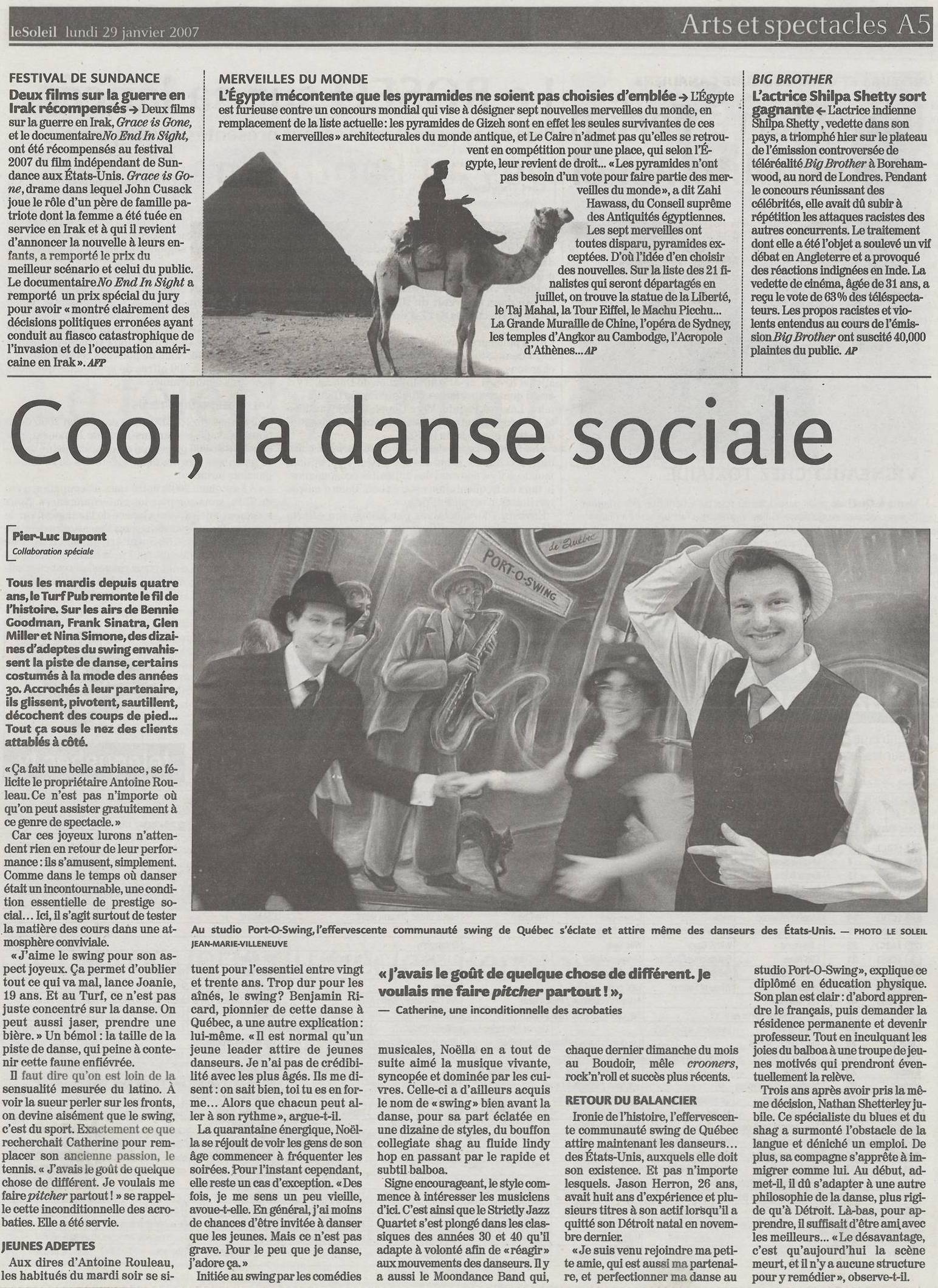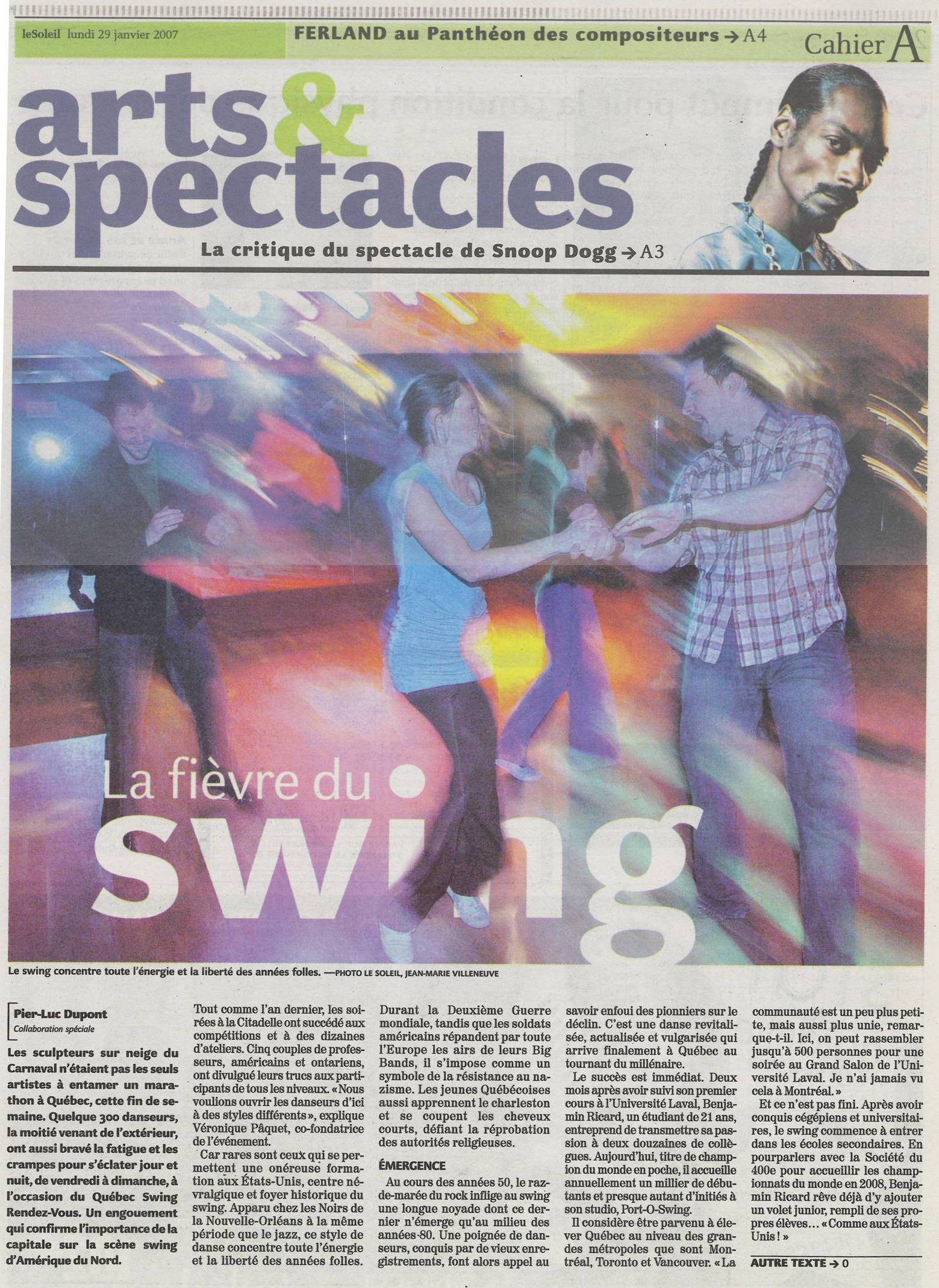 The QSRV 2007 also profited from media coverage, which also benefited the entire swing community, with two articles in Le Soleil, Québec city's daily newspaper, several radio spots and the central page of the music section in QuébecScope in January 2007.